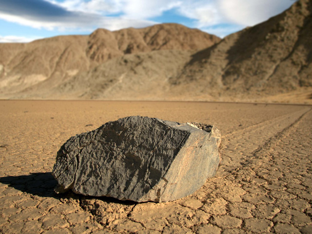 Moving Rock atau Batu Berjalan adalah salah satu misteri yang paling menarik dari Death Valley National Park, tepatnya di danau kering Racetrack Playa, California-AS. Batu berjalan itu dapat ditemukan dengan mudah di permukaan Playa dengan jejak panjang di belakangnya. Bagaimana mereka dapat bergerak atau berpindah masih menjadi misteri besar di benak para pengkaji.